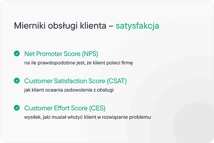 Twarde dane efektywnościowe to jedno, ale co z tym, co niewidoczne? Z satysfakcją lub niechęcią, którą klient wynosi po rozmowie, nawet jeśli wszystko zostało załatwione? Tu najważniejsze są te mierniki: CSAT, NPS i CES.